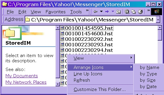 the best you can do is to click your my comp icon on your desktop......then c drive.....then program files...... then yahoo.....then messenger....then stored ims.....
