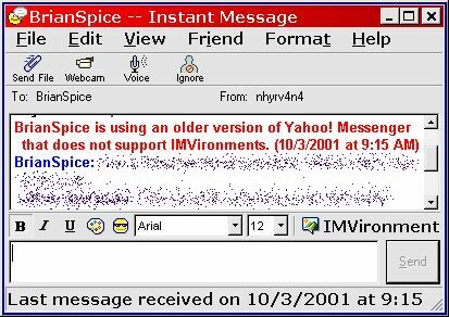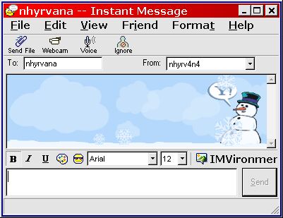 | Chatables *gone* Yahoo had a special Pepsi version of messenger, that used Chatables. Now looks like as of version 1036, Chatables are added as an imv. It basically is an intense Imv with web cam, all smileys, some animations, and lots of toys. IMVironmentson messenger beta build 1015 and better... chat environments to add to private messages. once they expire. they are gone. no longer supported on yahoo. want to throw a snow ball? or blow a kiss, just buzz your friend . you cant make your own imv's but you could edit a few gif files in an imv file..... (whistles innocently)