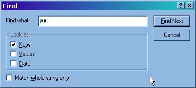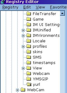 |  | | once you have closed messenger, click your start button, and type in regedit |  when it opens up... the fastest way to find where you need to would be to click FIND, |  | | that will open up a search box, and you can search by key, value, or data lets *oh for example* look for the KEY only for yurl should drop you at HKEY_USERS\. DEFAULT\Software\ Yahoo\Pager\yurl | HKEY_USERS\.DEFAULT\Software\Yahoo\Pager\yurl <<<<