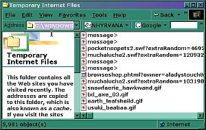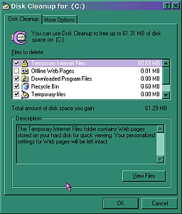the temp files..... your browser also stores loads of temporary internet files in its cache folder, all of which you wouldn't miss if they disappeared. If you use Internet Explorer 4 or 5, click Tools, Internet Options, click the Delete Files button, and then click OK. You use Netscape, Click Edit, Preferences, expand the Advanced category, and select the Cache option. In the Cache pane that appears, click the Clear Disk Cache button. This can free from 8MB to over 100MB of space used by cached files, depending on the settings you use. take a trip into c\windows\temp internet files and make sure all the cookies are gone too! |