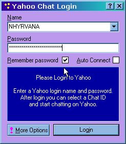 Quotes Erik.. "If YChat sits at "Sending login information..." you may need to update your cookie. Do this by clicking on change/ update account and logging in again.
